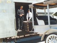 Left: Conductor Robin Becker and Trainman Beverly Hodges load the stage from the baggage car.