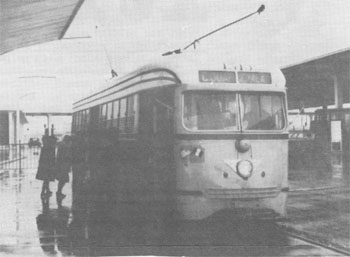 "El Paso's international streetcar line operated by the El Paso City Lines is a very interesting and inexpensive loop operation. It loops between downtown El Paso and downtown Juarez, Mexico and provides transportation for Mexican workers living in Mexico and working in the US. Many tourists use the all street operation line to do shopping in Juarez. The 20 PCC type cars used on the line are former San Diego PCC Cars. They are modified by having only one operating truck as compared to two on the standard PCC car. They also have longitudinal seating arrangements around the car so perhaps 100 or more people can be "crowded" into the center of the car.