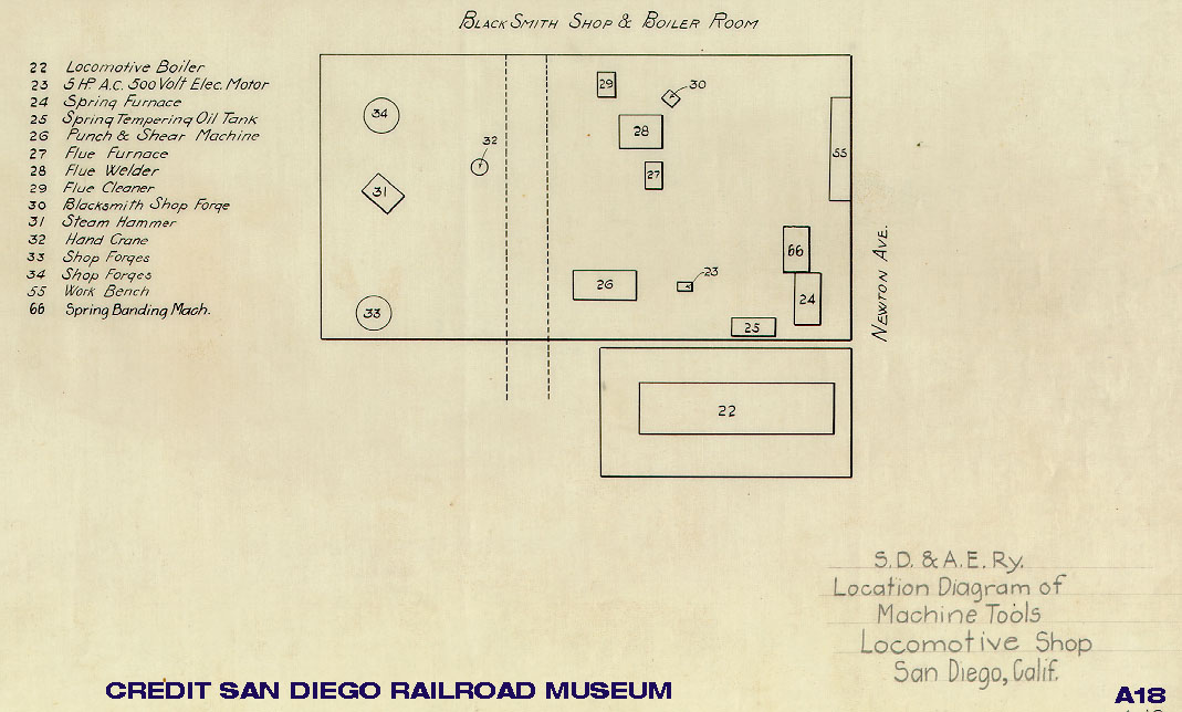 A18 Location Diagram of Machine Tools Locomotive Shop, No Date. 112kb