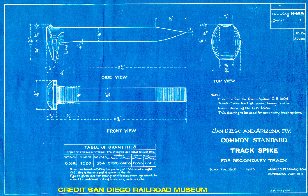 H169 Track Spike for Secondary Track, Nov. 26, 1920. 321kb