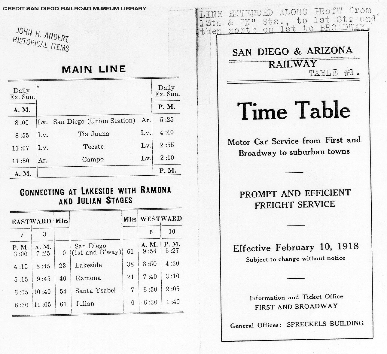 Imagine the shock, the surprise and then renewed confidence of the people of San Diego when the San Diego Union of December 14, 1906 displayed the almost incredible headlines: RAILROAD FROM SAN DIEGO TO YUMA IS NOW ASSURED. Named San Diego and Arizona Railway. Line Will Be Built and Owned By Spreckels Interests.
